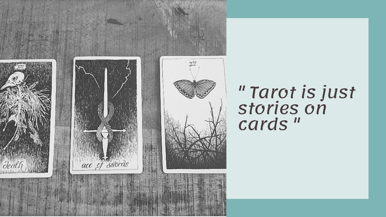 Na deze lezingen begon ik zelf ook interesse te krijgen, maar door vele veranderingen kwam het er iedere keer maar niet van om me er in te verdiepen. Tot enkele maanden terug ik onverwacht thuis kwam te zitten en in ene de tijd had om me er in te verdiepen. Na lang speuren kocht in een mooie tarot kaarten set van The Wild Unknown geschreven en getekend door Kim Krans. Deze set is om te starten in de tarot een hele fijne set. Kim Krans schrijft in het bijgevoegde boek heel fijn en leid je bijna aan de hand door de wereld van tarot. Maar het blijft vooral een ding van veel doen.